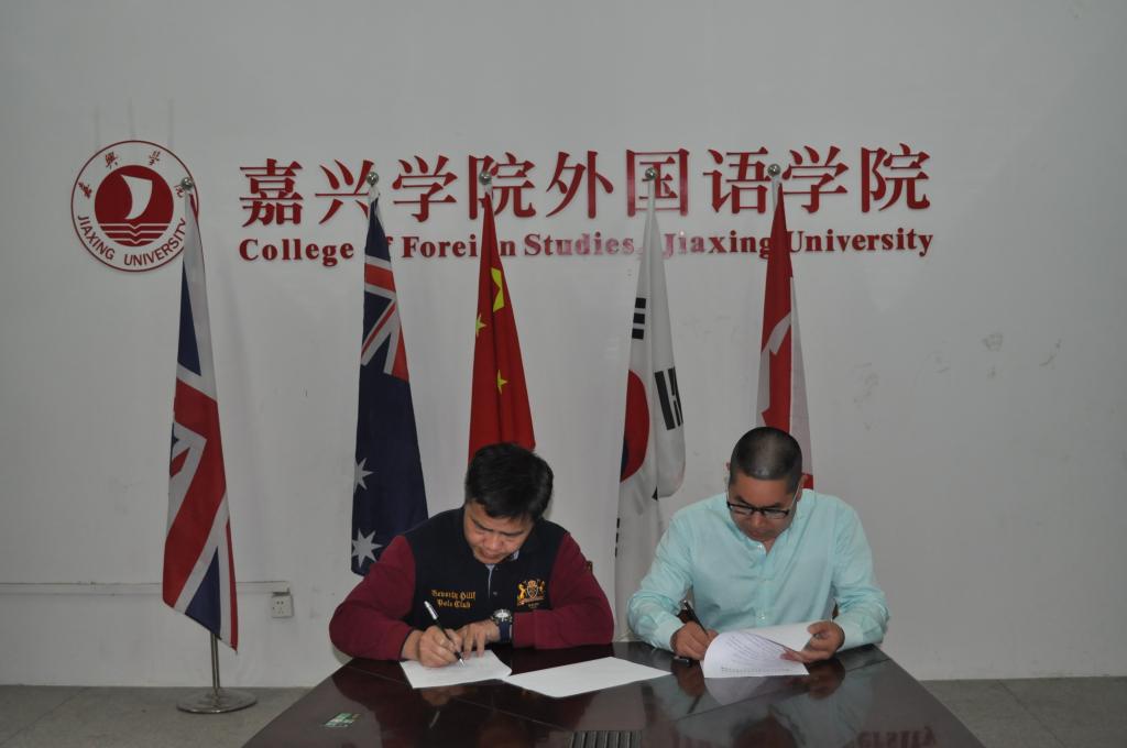 5月22日下午,我院与浙江助翔网络科技有限公司共建外语专业大学生校外实践教育基地协议书的签约仪式在外语楼101会议室举行。91论坛 唐艳芳院长和浙江助翔网络科技有限公司的肖忠良经理在协议书上签字。
