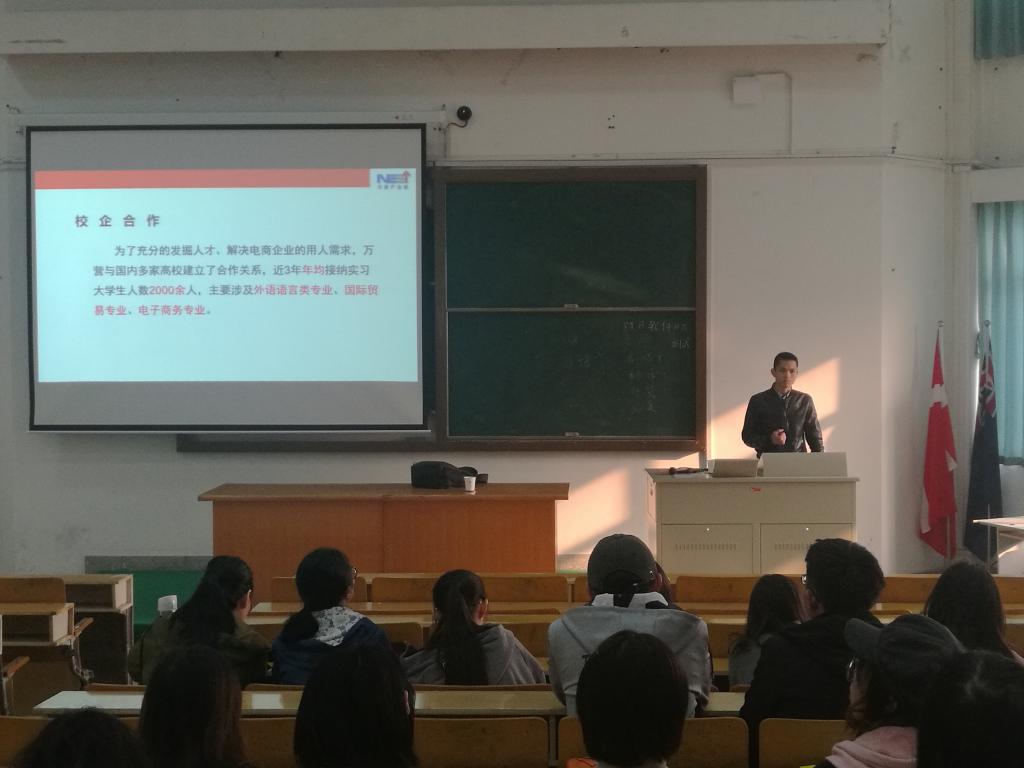 为了让同学们顺利实习,衔接就业,负责日语专业实践教学的系副主任孙玉慧老师积极谋划,先后邀请了东忠人才开发有限公司、义乌万营网络科技有限公司、温州阿辛达日语学校、大连久乐信息服务有限公司和杭州朗培网络科技有限公司的负责人前来我院,分别于11月22日、29日和12月6日下午,针对日语专业15级学生举办了5场实习宣讲会。