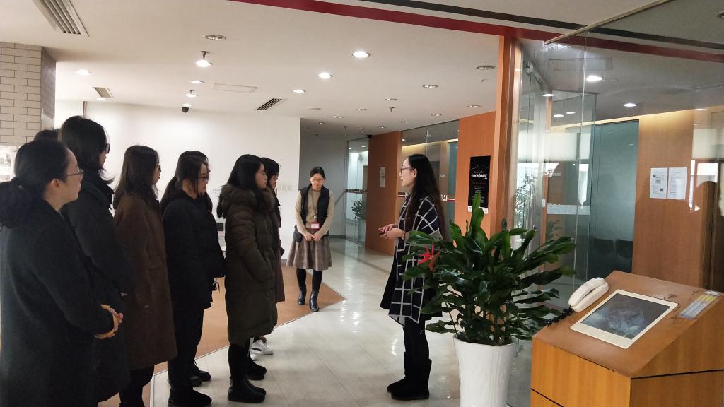 2018年12月27日,日语专业大四15级10名学生在日语系副主任张艳琴老师带领下赴91论坛 人文实践基地杭州“东忠集团”学习参观。“东忠集团”实践基地始建于2015年,校企合作顺利运行3年。截至目前,91论坛 日语专业前去参观学习学生多达81人次,选择在“东忠集团”实习并就业的日语专业学生有19人。