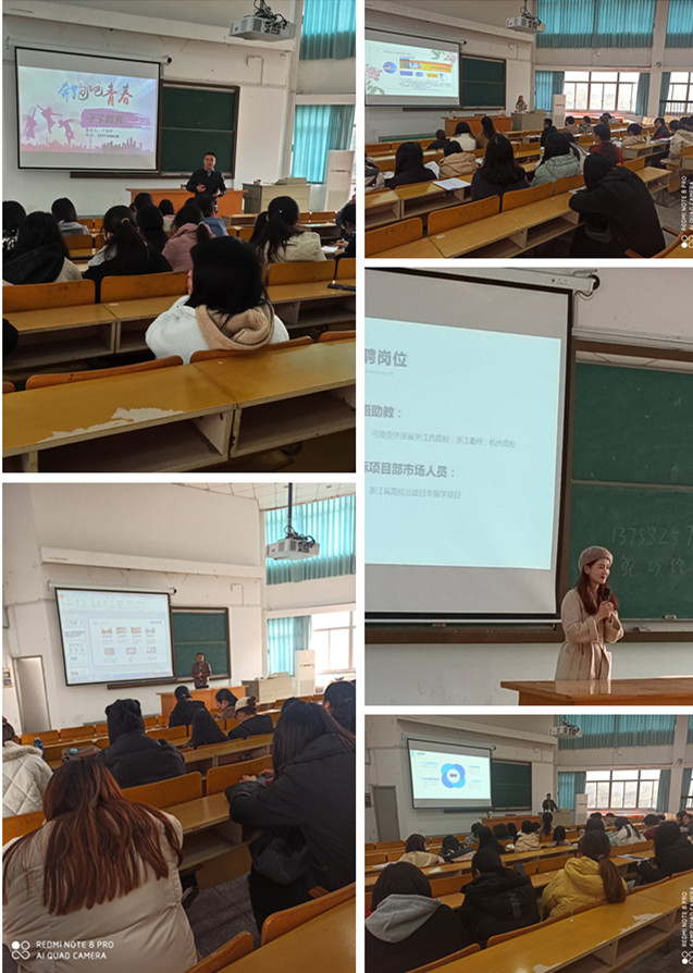 先后有来自嘉兴、杭州、温州和金华的嘉兴杉惠服饰有限公司、杭州孑孓教育有限公司、杭州光驰控股有限公司、杭州中城洵实企业管理咨询有限公司、杭州明好教育有限公司、东忠人才开发有限公司、温州阿辛达教育有限公司和金华科晟教育共8家企业高管亲临学校,担任宣讲教师。日语系分管实习工作的副主任孙玉慧老师和担任17级2个班的班主任方江燕、王雪2位老师积极组织,认真参与课堂教学,保证了实习宣讲课堂的顺利实施。