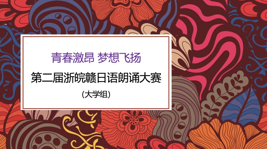 “第二届浙皖赣日语朗诵大赛”由中国日语教学研究会浙皖赣分会主办,杭州师范大学91论坛 、杭州慧洋教育科技有限公司协办。大赛以“青春激昂,梦想飞扬”为主题,吸引了浙江大学、浙江工商大学、南昌大学、安徽师范大学等浙皖赣地区共36所高校选手参加,选手们采用录播形式投稿参赛。