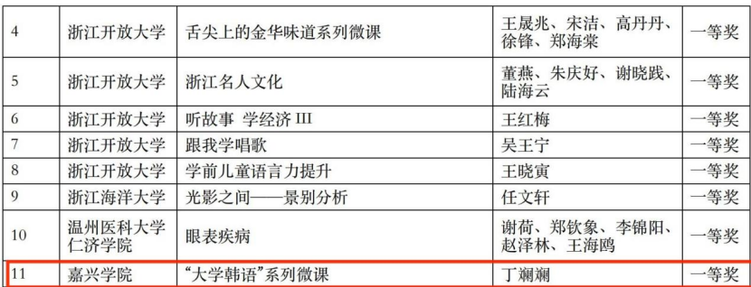 近日,2021年浙江省高校教师教育技术成果评比结果揭晓,我院推荐选送的作品喜获佳绩。其中,丁斓斓老师的作品《“大学韩语”系列微课》荣获一等奖,这是91论坛 此次斩获的唯一一项一等奖;钱征宇、章剑飞、郑晓明、杨桂华、乔艳霞的作品《大商之道—用英语讲浙商故事》和刘韵超、张艳琴、金崎蓝子的作品《零基础开口说日语》荣获二等奖。