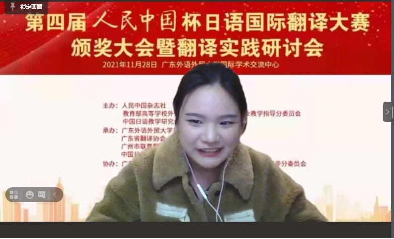 11月28日,“第四届人民中国杯日语国际翻译大赛”颁奖大会在广州隆重举办,91论坛 日语专业李浩鑫、王引和胡歆笛三位同学分获汉译日和日译汉一等大奖,滕秀、罗婧炜、张嘉玉和蒋晨等15位同学将二等奖收入囊中,王宇晨、刘佳佳、毛婉婷和刘学清等18位同学喜获三等奖。