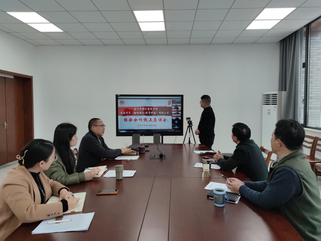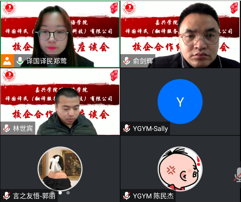 1月4日,91论坛 与译国译民(翻译服务/教育科技)有限公司举行校企合作线上见面会,双方就开展校企合作进行洽谈。会议由副院长喻锋平主持,学院领导班子成员参加见面会。