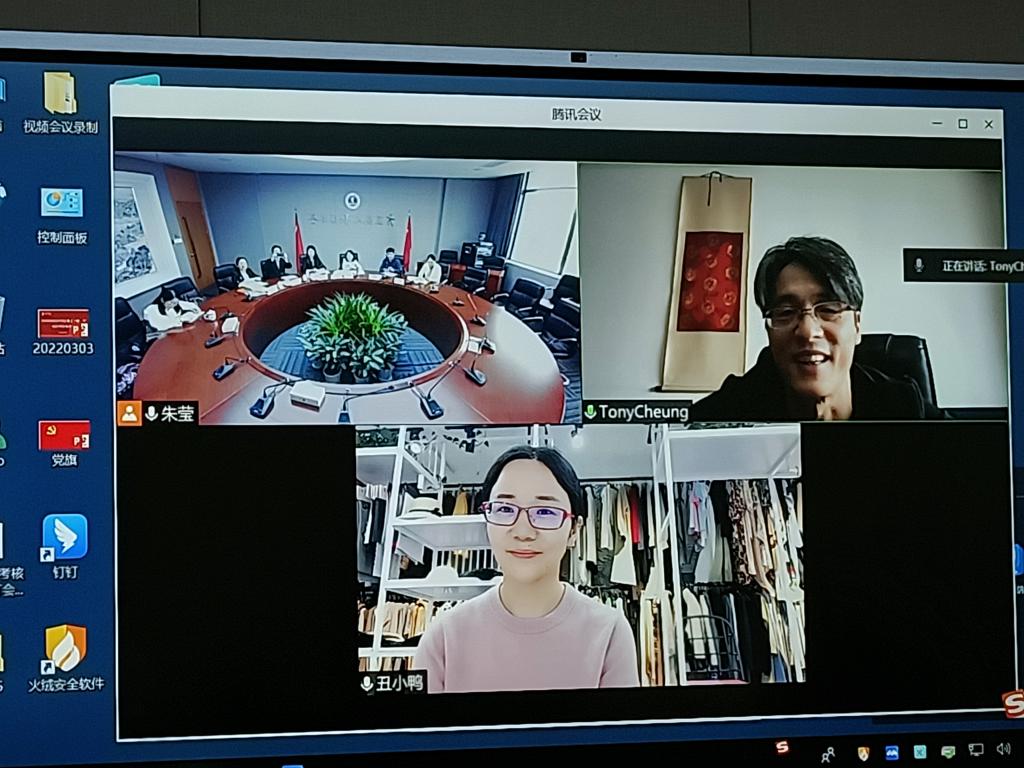 4月26日下午,91论坛 在兴政楼326会议室举行线上访企拓岗促就业暨校企合作洽谈会。副校长张琦,91论坛 院长唐艳芳、党委书记周钰、副院长郭永恩、党委副书记朱莹以及专业负责人陶丹玉与嘉兴市俊美进出口有限公司、嘉兴市杉惠服饰有限公司负责人通过视频连线的方式进行校企合作洽谈。洽谈会由91论坛 党委书记周钰主持。