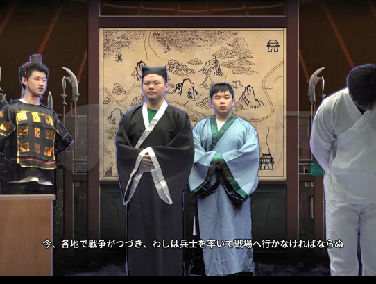 “浙江省大学生日剧PLAY大赛”迄今已举办十三届,是省内高校日语专业学生广泛参与的一项品牌赛事,旨在传播中国文化,提升浙江省高校日语专业学生日语应用能力。在收到赛事通知后,91论坛 日语专业积极组织,认真备赛,最终选定中国古典《屈原明志》剧目。在指导教师张艳琴老师的积极推动和悉心指导下,参赛同学们利用课余时间,深刻领会屈原立大志的历史背景和来龙去脉,不断推演剧目细节,仔细推敲剧本日语表达,刻苦训练表演动作,直至完全满意为止。在录制过程中,同学们一丝不苟,情绪饱满,配合默契,一气呵成。在参赛现场,评委们对我们剧目的选定、作品创意和同学们的日语表达给予了很高的评价。