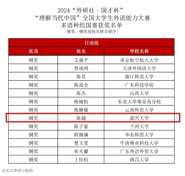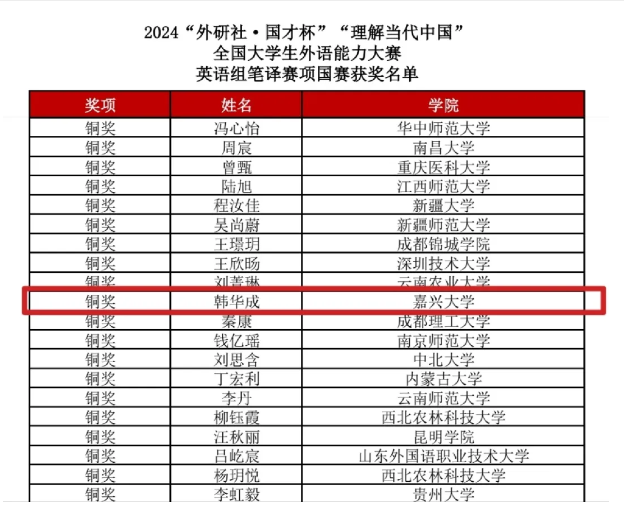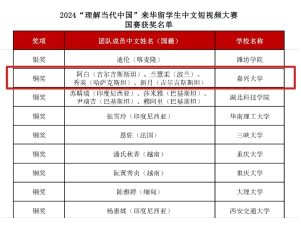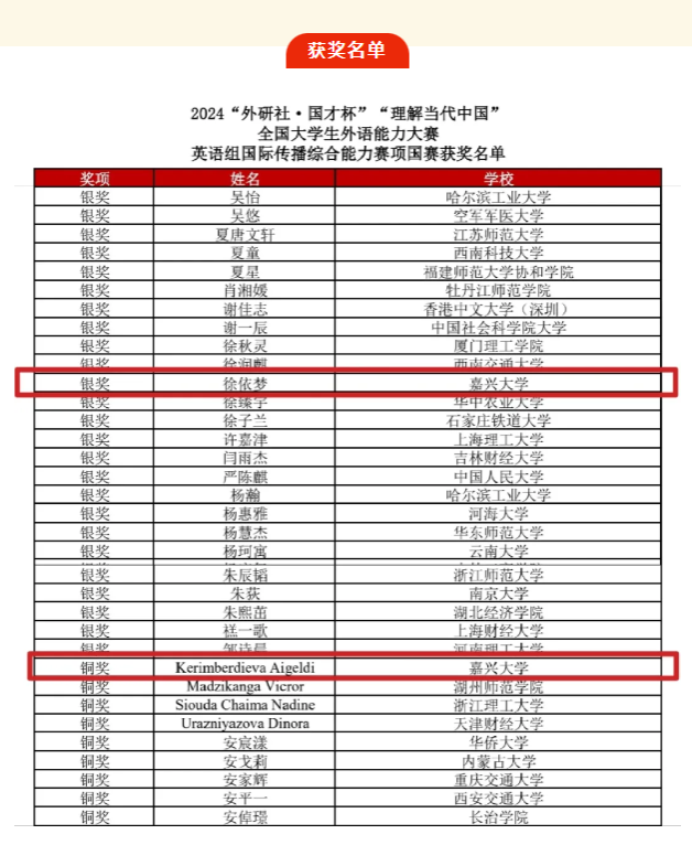 近日,2024年“外研社·国才杯”外语能力大赛落下帷幕,91论坛 进入全国决赛的8名选手参加了综合、笔译、短视频、多语种等多个赛道的激烈角逐。本次大赛91论坛 选手获得银奖1项,铜奖4项。其中英语国际传播能力综合组英语22级徐依梦获银奖,国经22级Kerimberdieva Aigeldi获铜奖;笔译组英语22级韩华成获铜奖;短视频国际中文组国经22级DZHUMABEKOV ABAI(阿白),国经22级Wiktoria Litkowiec(兰慧柔),工商管理23级KUNTORE SUIKIMZHAN(秀英),国经22级Kerimberdieva Aigeldi(新月)获铜奖;多语种组日语22级陈越获铜奖。