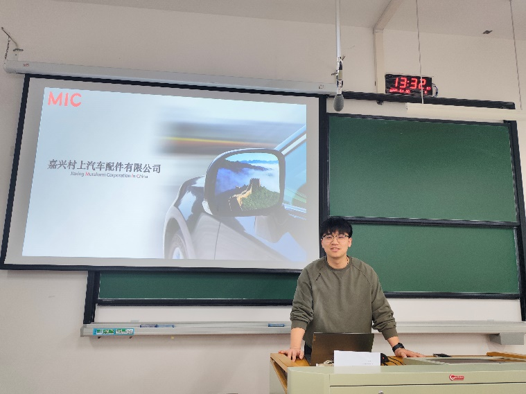 随后,他将视角聚焦于嘉兴村上汽车配件有限公司,介绍了这家深耕汽车后视镜领域的日资企业的发展历程、主营业务与行业地位。他特别详细说明了公司当前面向应届生的招聘岗位、能力要求及发展通道,为学生提供了清晰的求职指引。