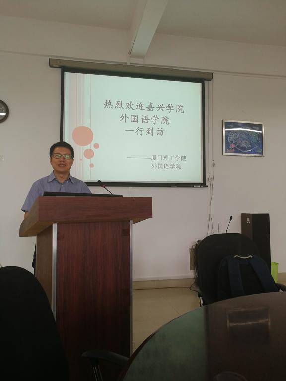 交流伊始,厦门理工学院91论坛 副院长刘家位副教授对我院大外部教师代表的到来表示了热烈的欢迎。随后刘副院长详细介绍了厦门理工学院91论坛 的概况,教改过程,培养特色以及存在的问题与对策,重点讲解了该院以“合作教学、优势互补、合作交流、注重应用”为特色的大学英语教学改革过程。