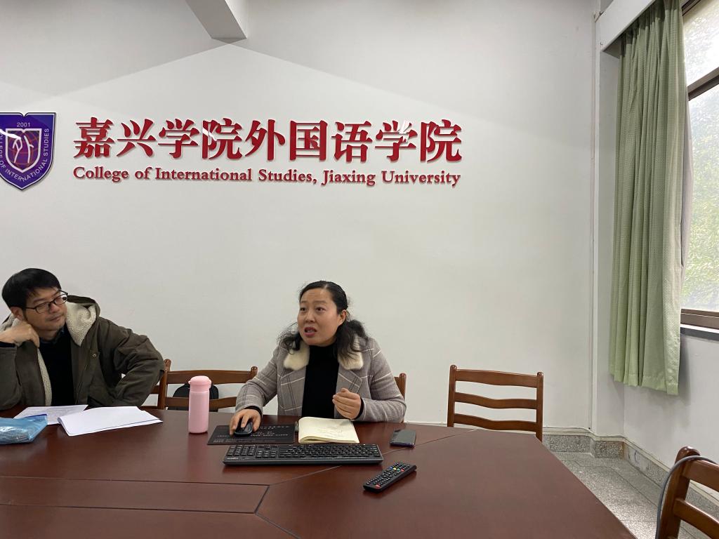 首先进行汇报的是陶丹玉老师,她主持的视频资源课项目(B2)——《中外文化比较系列专题》依托校级教改“基于PBL国际化教育教学改革实验区”,以PBL教育模式和核心理念为指导,结合国内高校教育实情和本校学生人才培养定位和目标,采用PBL教学法、案例教学、项目实践、混合式教学等多元化教学手段,通过模块化和跨学科团队教学,培养了一批外语水平高,综合应用能力强,具有国际化视域和人文理念,跨文化交际能力强的高级复合型创新创业人才。