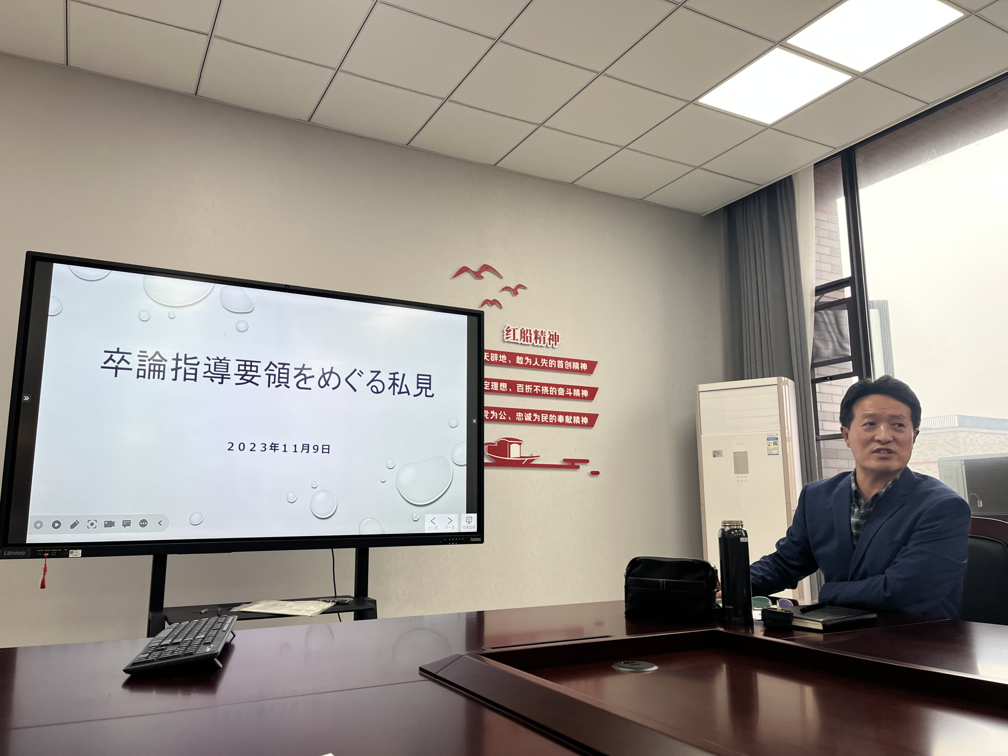 随后,教研室主任王雪老师就2023年毕业论文推进日程以及与往年不同的一些变化等与老师们进行了交流,同时就目前毕业论文工作中存在的一些问题进行了一一认真的解答。