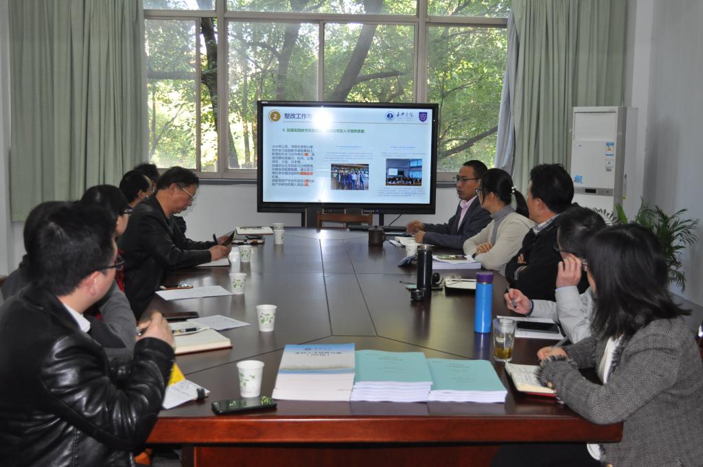 11月4日下午,发展规划处副处长王海军率学校本科教学工作审核评估整改回访工作督导组来院检查指导工作。学院在外语楼204召开评估整改汇报会,副院长喻锋平、郭永恩、各系部主任和教务办主任参加会议。