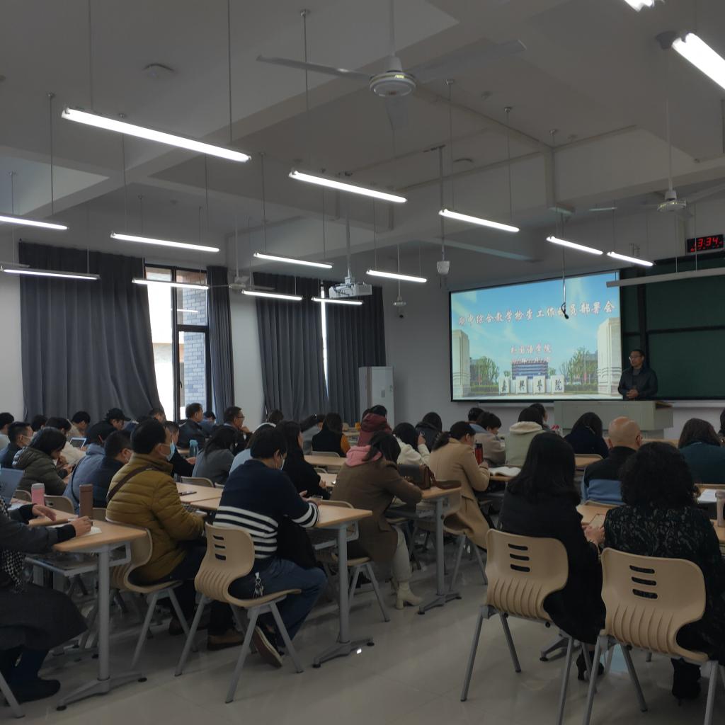 在示范课开始前,副院长喻锋平主持召开了期中综合教学检查工作动员部署会,对本学期期中教学检查工作进行了安排部署。他强调,各系部要按照计划安排,做到边检查、边建设、边整改;全体教师要充分认识疫情防控教学新要求,加强教风建设,做好线上线下教学、考试、教研活动等工作;各科室要通力合作,圆满完成各项教学检查工作,共同提升学院教育教学水平。