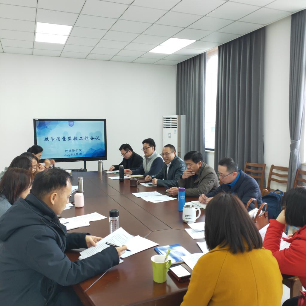 为进一步提高学院教学质量,加强91论坛 教学质量监控,增强教师教书育人意识,91论坛 于2022年3月4日下午在兴德楼516室召开本学期教学质量监控工作会议。91论坛 院长唐艳芳、副院长喻锋平、副院长郭永恩、英语系专业负责人陶丹玉教授、督导组成员周红教授及督导组其他成员、各系部正副主任参加了会议。会议由副院长喻锋平主持。