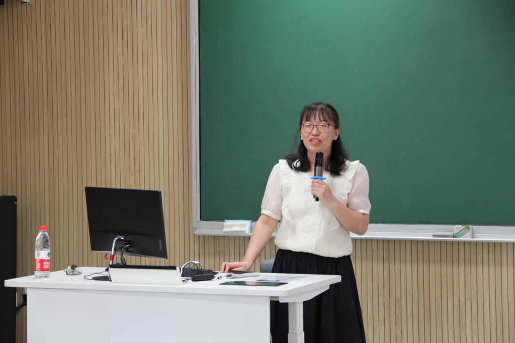 作为主讲嘉宾,边娜老师围绕“以赛促教”的教学创新主题,从竞赛回顾与教学探索两个方面出发,为大家带来了一场精彩纷呈讲座。边娜老师首先回顾了从2016年到2022年的参赛经历以及个人收获,激励各位教师积极参赛,挑战自我,鼓励学生,从而更好地服务于教学实践。随后边娜老师分享了《基础英语3》的教学探索与创新案例。她从介绍课程概况入手,分析了这门课程的学情,提出LEAP(飞跃)教学模式。从教学内容的古今结合、中外结合和讲练结合到课堂活动及课程思政贯穿于教学全过程,边娜老师深入阐述了这门课程的创新特色,并以第六单元为例,进行教学案例展示,生动地展现了创新如何有机融入教学实践。