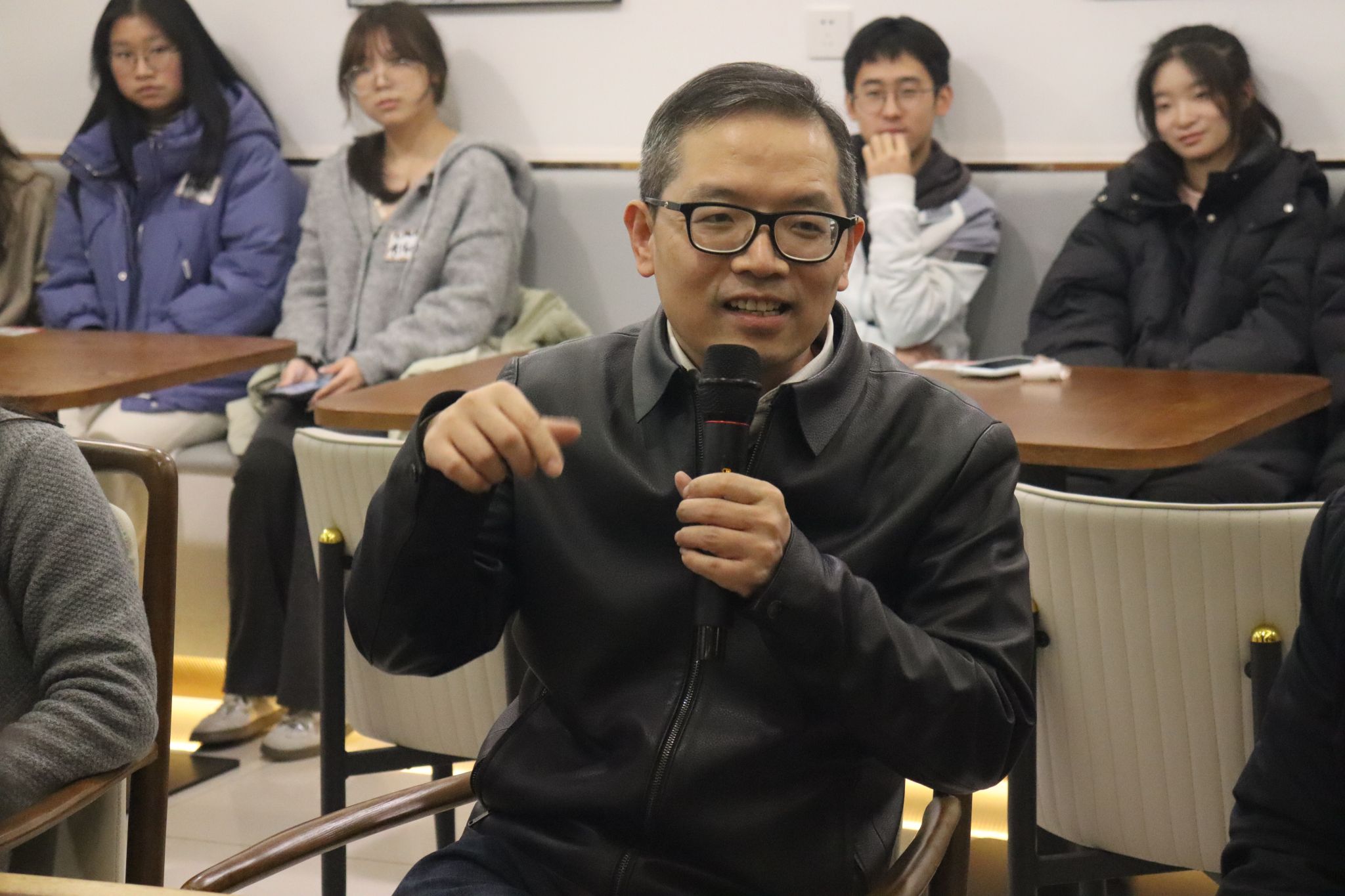 12月12日晚,91论坛 2024-2025(1)最后一场英语角在图书馆尚书吧成功落下帷幕。91论坛 副校长周宏伟、91论坛 院长唐艳芳和副院长邱佳以及特邀嘉宾西班牙语翻译员姜鸿昊先生等亲临现场,与同学们就“Career Planning”共同开启了一场轻松愉悦且极具指导性的英语交流盛宴。