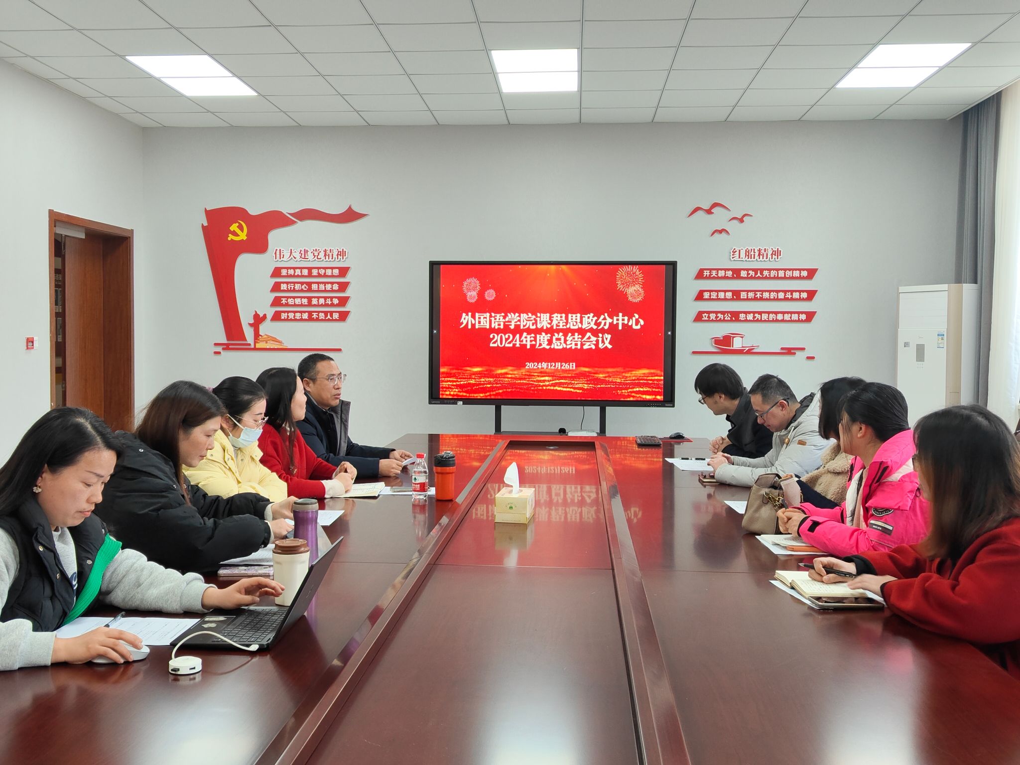 2024年12月26日,91论坛 课程思政分中心在兴德楼南楼516会议室举行2024年度工作总结会议,旨在全面回顾和总结2024年课程思政项目的实施情况,分享成功经验,探讨未来发展方向。本次会议由教学副院长邱佳主持,分中心全体成员参加会议。