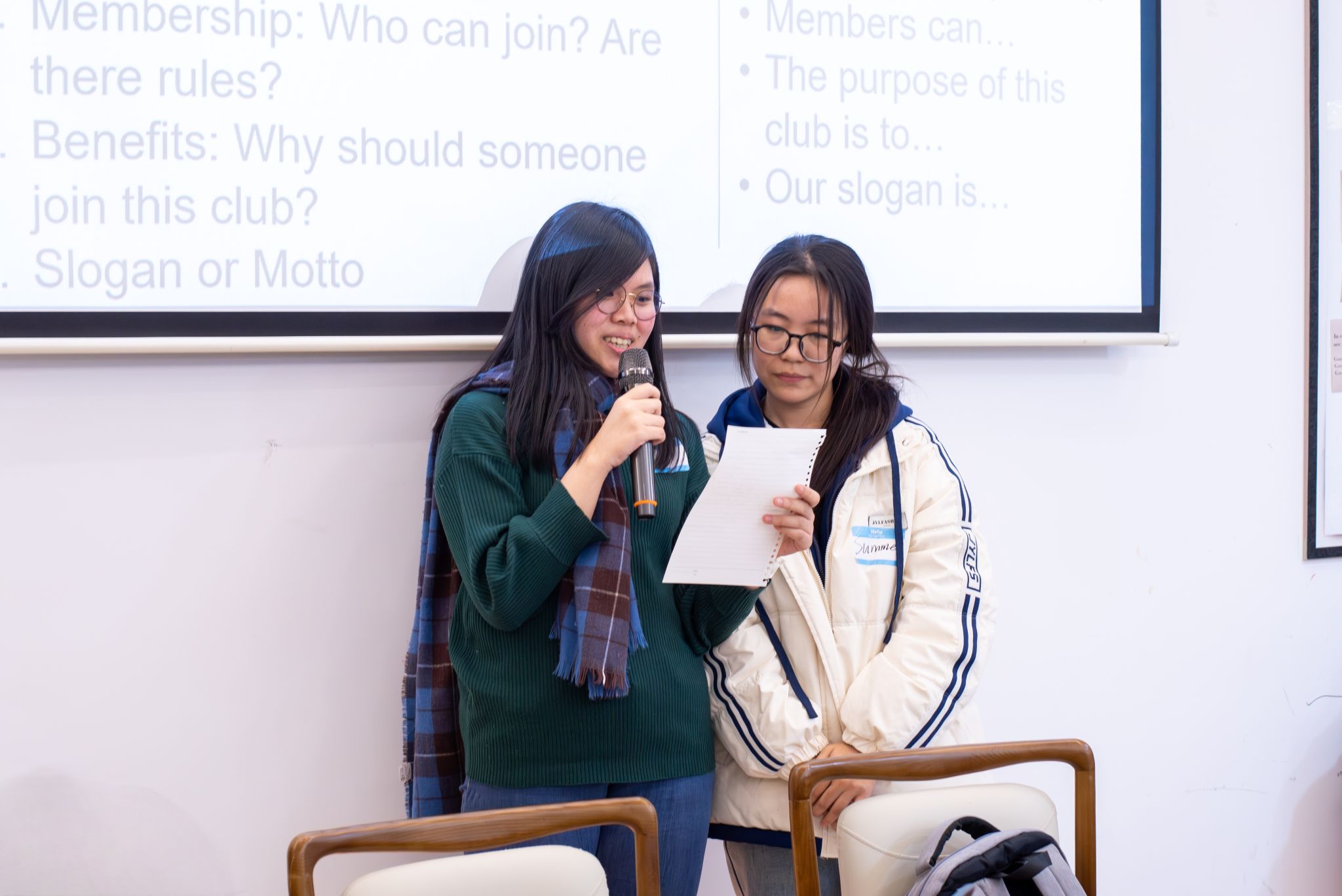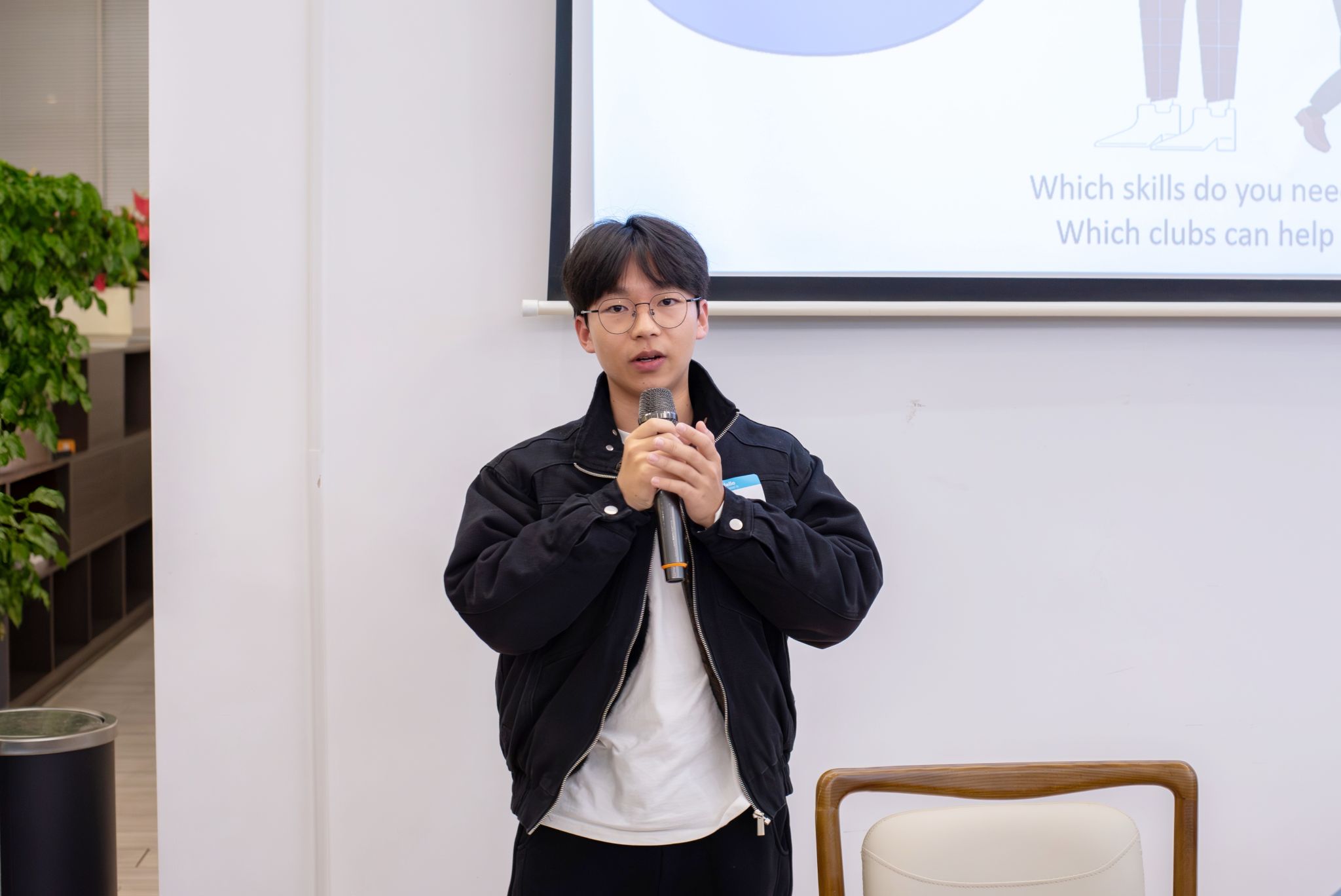 暖场环节过后,外教Kay率先引导学子展开主题探讨。他提出“‘戏剧社’和‘我的世界社’分别更侧重体能还是思维”的问题,引发大家初步思考。随后,一个“Would you rather”的选择题(你更愿意挑战自己的身体还是自己的心智)让现场讨论热度升级,学子们纷纷举手分享观点。在此基础上,Kay进一步引导大家聚焦“社团技能与职业发展”的关联,提出“社团中培养的领导力、时间管理能力、沟通技巧等,对未来职业有何具体帮助?哪些社团能锻炼这些能力?”的问题,让交流从兴趣走向实用。