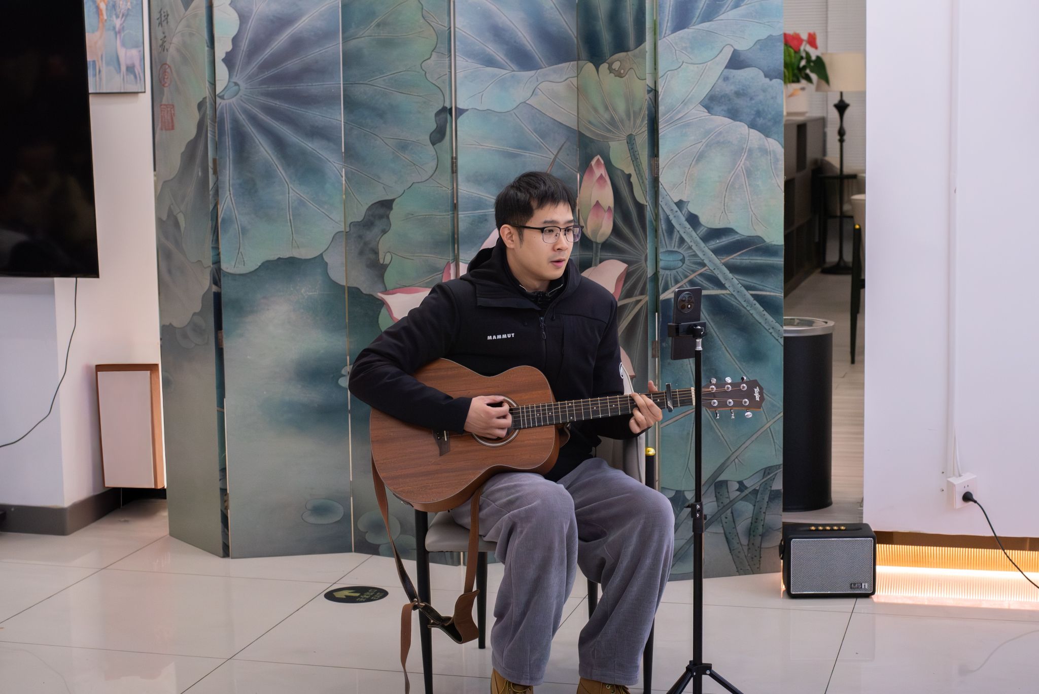 阮雨晴同学以精彩的舞蹈拉开活动序幕,灵动的舞姿瞬间点燃现场气氛。紧接着,陈泳杰老师怀抱吉他登台弹唱,悠扬的旋律引得台下同学纷纷跟唱,现场化作默契温暖的大合唱海洋。随后,张静老师带来趣味问答互动,“我们学校一共有多少个社团?”的问题引发学子踊跃竞猜。她通过一组生动照片,展示了健美社、纵横棋社、流行舞社等社团的日常活动剪影,让在场学子对校园社团有了更直观的认识。压轴登场的街舞社成员,以一段活力四射的表演将现场气氛推向高潮。