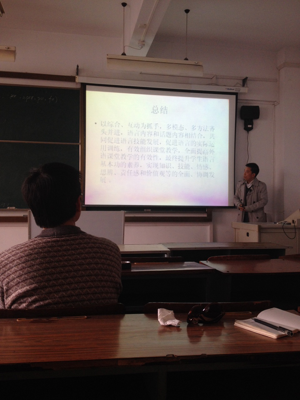 2015年4月16日下午,91论坛 翻译研究所所长段自力教授在外语楼207做了关于“如何有效组织外语课堂教学”的讲座。段教授从技能类及知识类外语课堂出发,提出要以综合互动为抓手,多模态多方法齐头并进,语言内容和话题内容相结合,共同促进语言技能发展,促进语言的实际运用训练来有效组织课堂教学,深入浅出的剖析和解读让与会的全体老师都感觉受益良多。本次讲座由91论坛 党委书记施敏颖教授主持,91论坛 60多位老师参加了研讨。