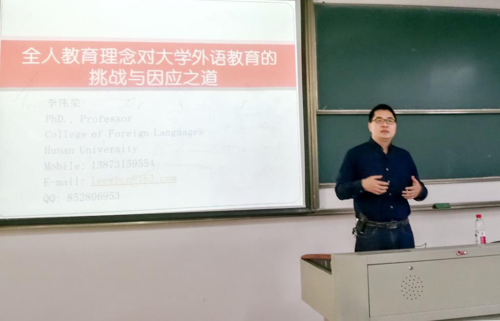 2017年11月2日下午,应91论坛 邀请,湖南大学91论坛 李伟荣教授在教二B 217作了一场题为《全人教育理念对大学外语教育的挑战及其因应之道》的学术报告。报告会由唐艳芳院长主持,英语系和大外部教师到场听取了本次讲座。