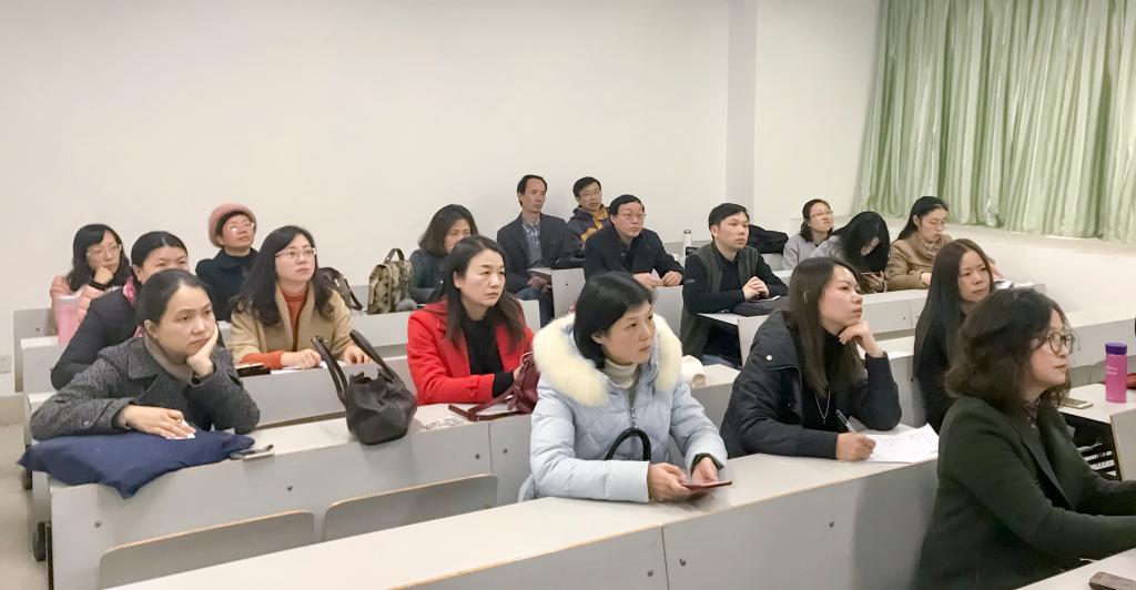 2017年11月30日下午,福建师范大学91论坛 林明金教授应邀来我院讲座。林教授以《大学英语3E教学理论与实践》为题在教二B325为全体大外教师作了一场“暖心、齐心、启心”讲座。讲座由大外部高万全主任主持,全体大外教师到场细心聆听。