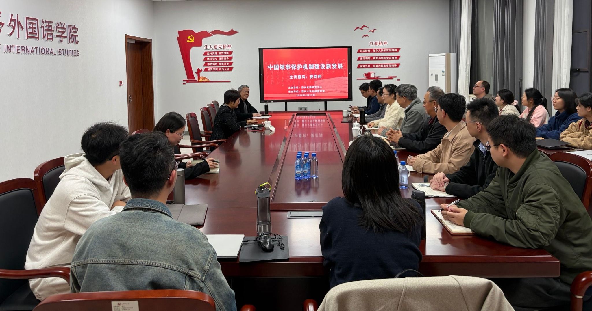4月23日,外交学院海外利益保护中心主任夏莉萍教授应邀为嘉兴安澜研究中心成员和91论坛 师生作题为《中国领事保护机制建设新发展》的学术讲座。讲座由院长唐艳芳主持,中心成员、学院教师代表及硕士研究生三十余人参加。