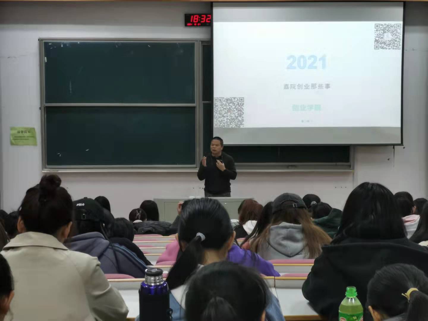 在互动环节,顾老师还对创新创业进入实践环节可能遇到的问题做了讲解,耐心地解答同学们提出的一些疑问。