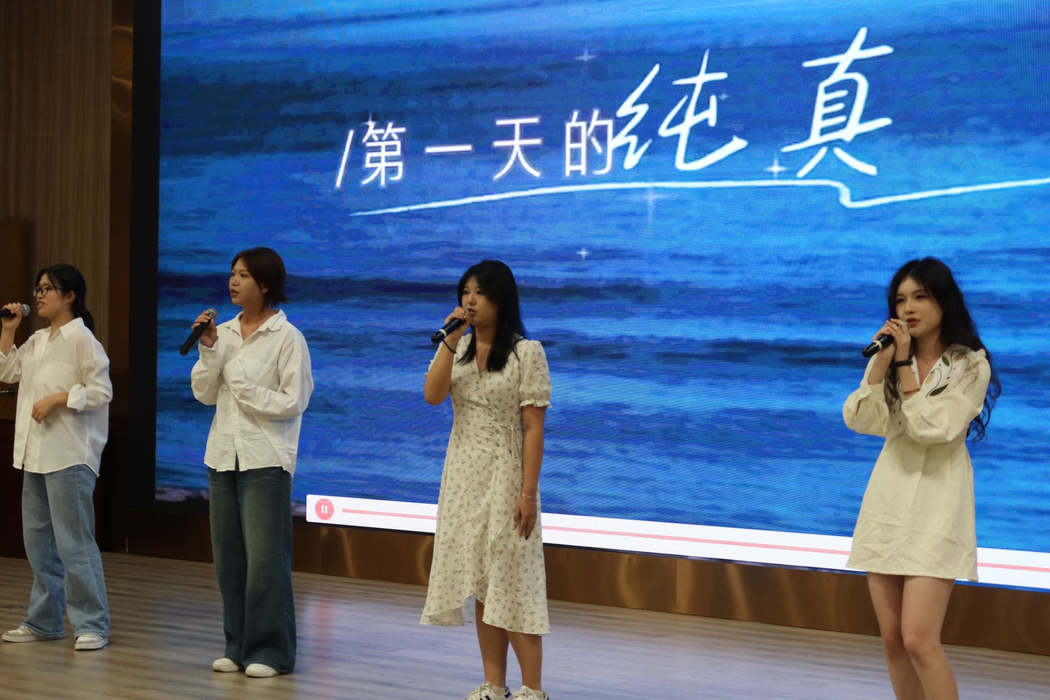 新生代表英语232班林若兮表达了对各位老师和学长学姐的感谢,也表现出对未来大学生活的期待,同时给予自己和全体新生最美好的祝愿:“勿忘初心,坚守自我;提升素养,规范言行;踔厉奋发,执着超越。”