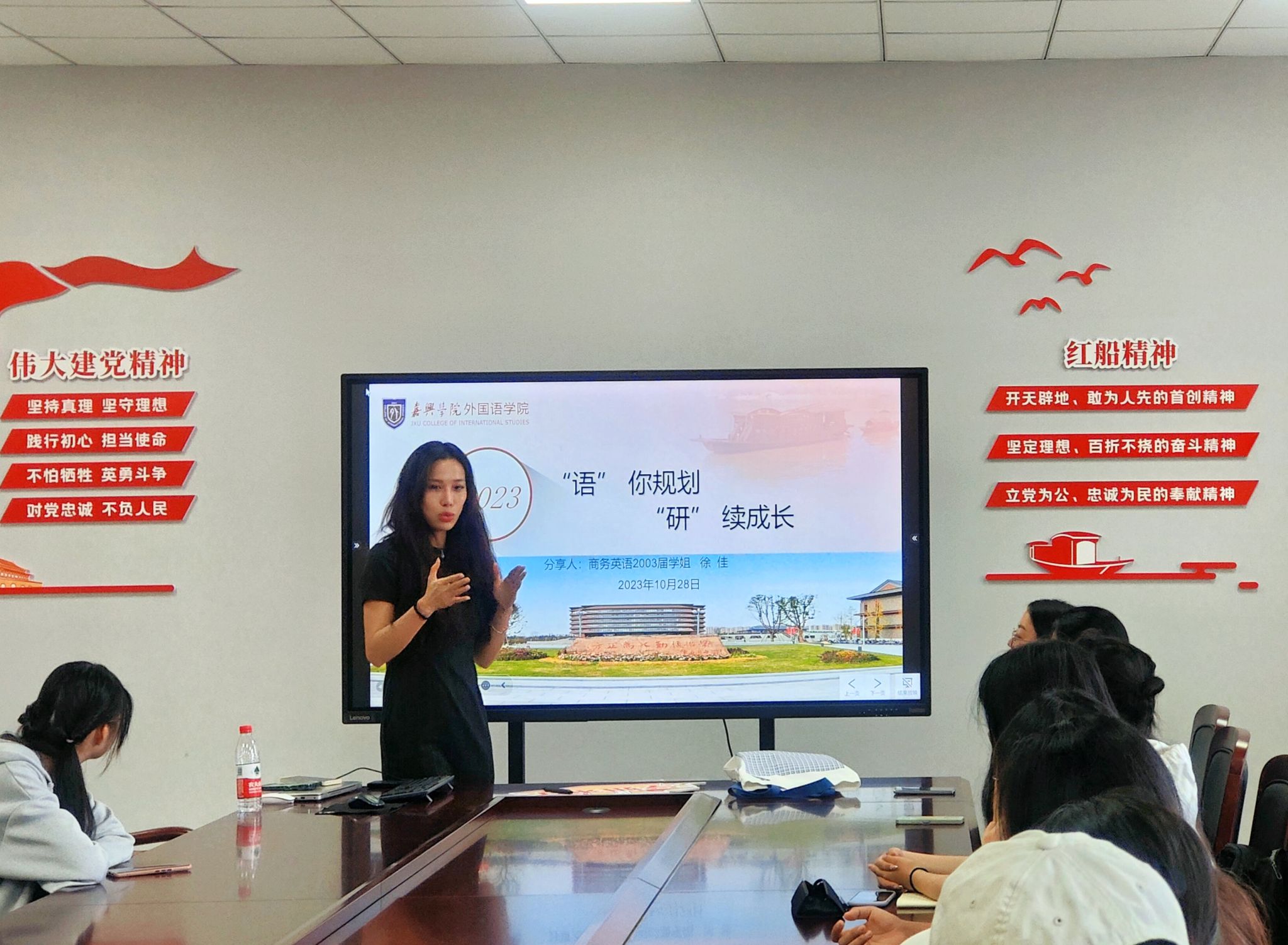 为帮助同学们明确学习和发展方向,91论坛 于10月28日开展了“语”你规划“研”续成长系列讲座之“学姐来了”经验分享会。本次活动邀请到了嘉兴三浦精密机械科技有限公司、浙江德源机械科技有限公司总经理——2003届校友徐佳。学院党委副书记朱莹、学工办主任胡笳丽及三十余名学生参与本次活动。