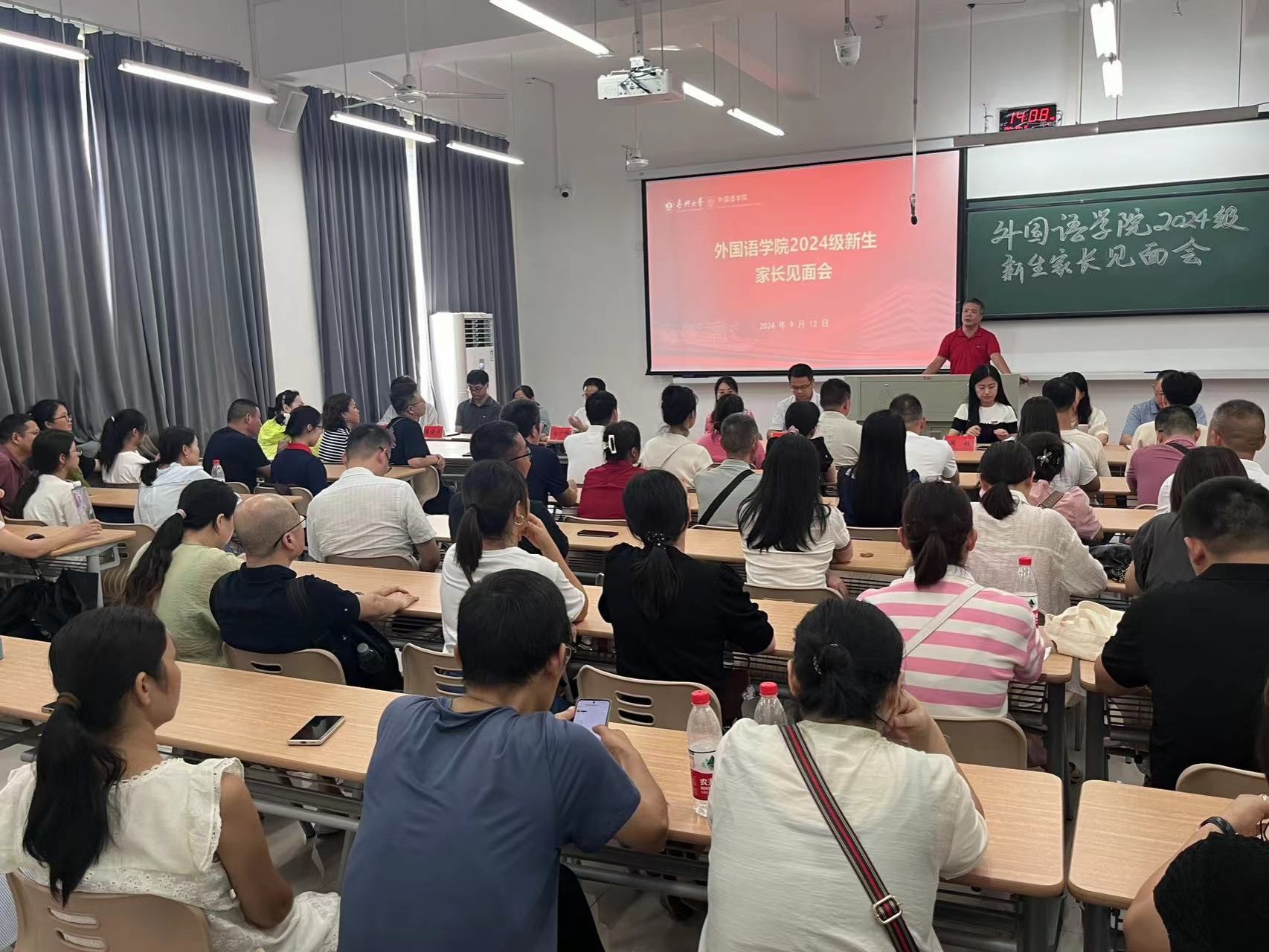 9月12日下午,91论坛 在兴德楼南楼123教室举行了2024级新生家长见面会,搭建家校沟通平台,共同为新生们的成长保驾护航。学院党政领导、系主任、教务办主任、2024级新生班主任、辅导员以及新生家长参加了见面会。学院党委副书记张啸峰主持会议。