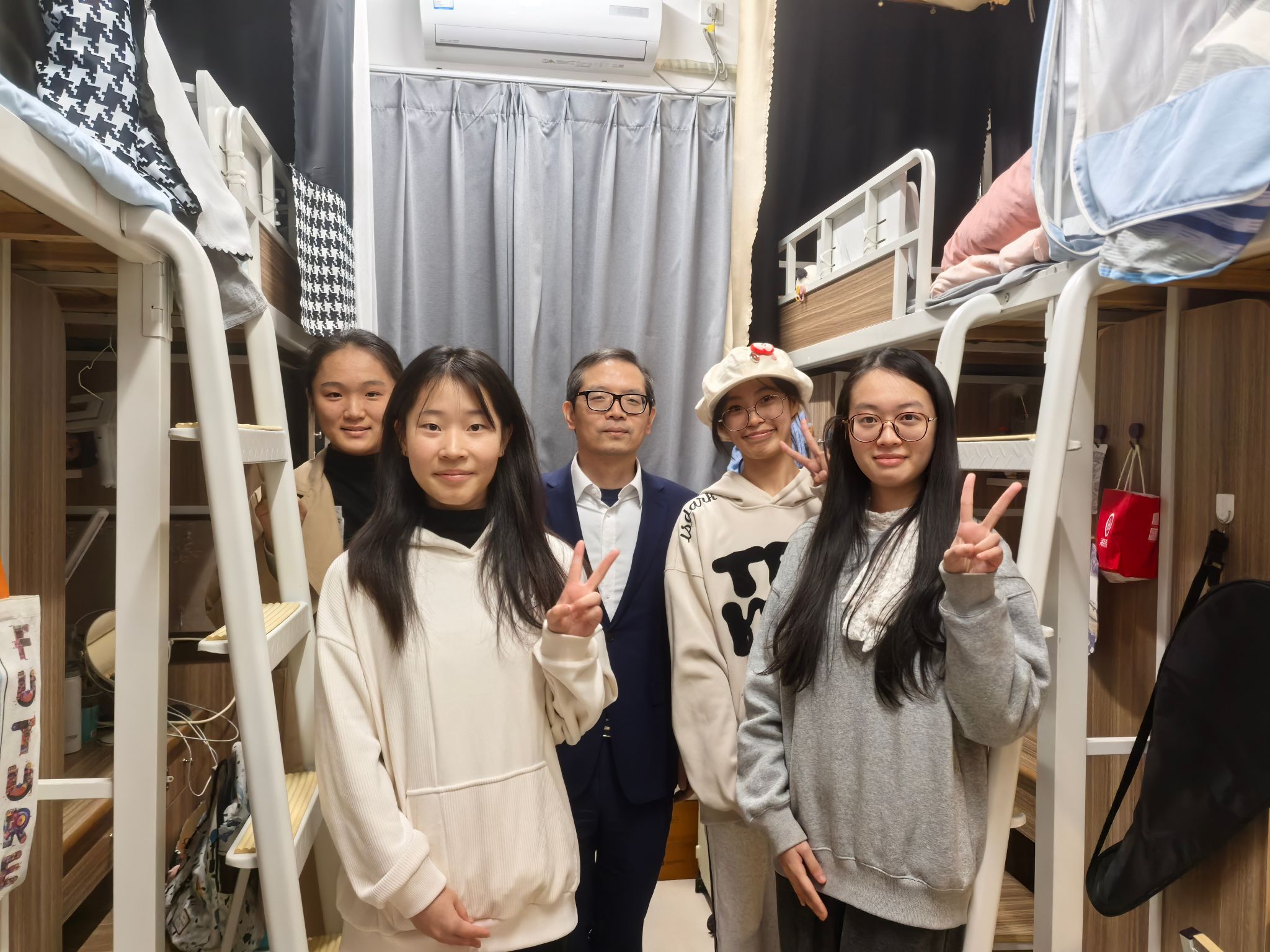在走访过程中,周宏伟详细了解了同学们的学习和生活情况,询问了她们在专业学习、课外活动以及未来规划等方面的想法和需求。他强调了英语学习的重要性和高级别英语人才的稀缺性、不可替代性,指出人工智能时代的今天,英语仍然是国际间交流的重要沟通桥梁,也是个人更高质量发展的重要的支撑性能力之一。他鼓励同学们不仅要学好英语,更要用好英语,通过语言学习打开通往世界的大门,还要积极面对挑战,充分利用学校提供的资源和平台,不断提升自己的专业能力和综合素质。