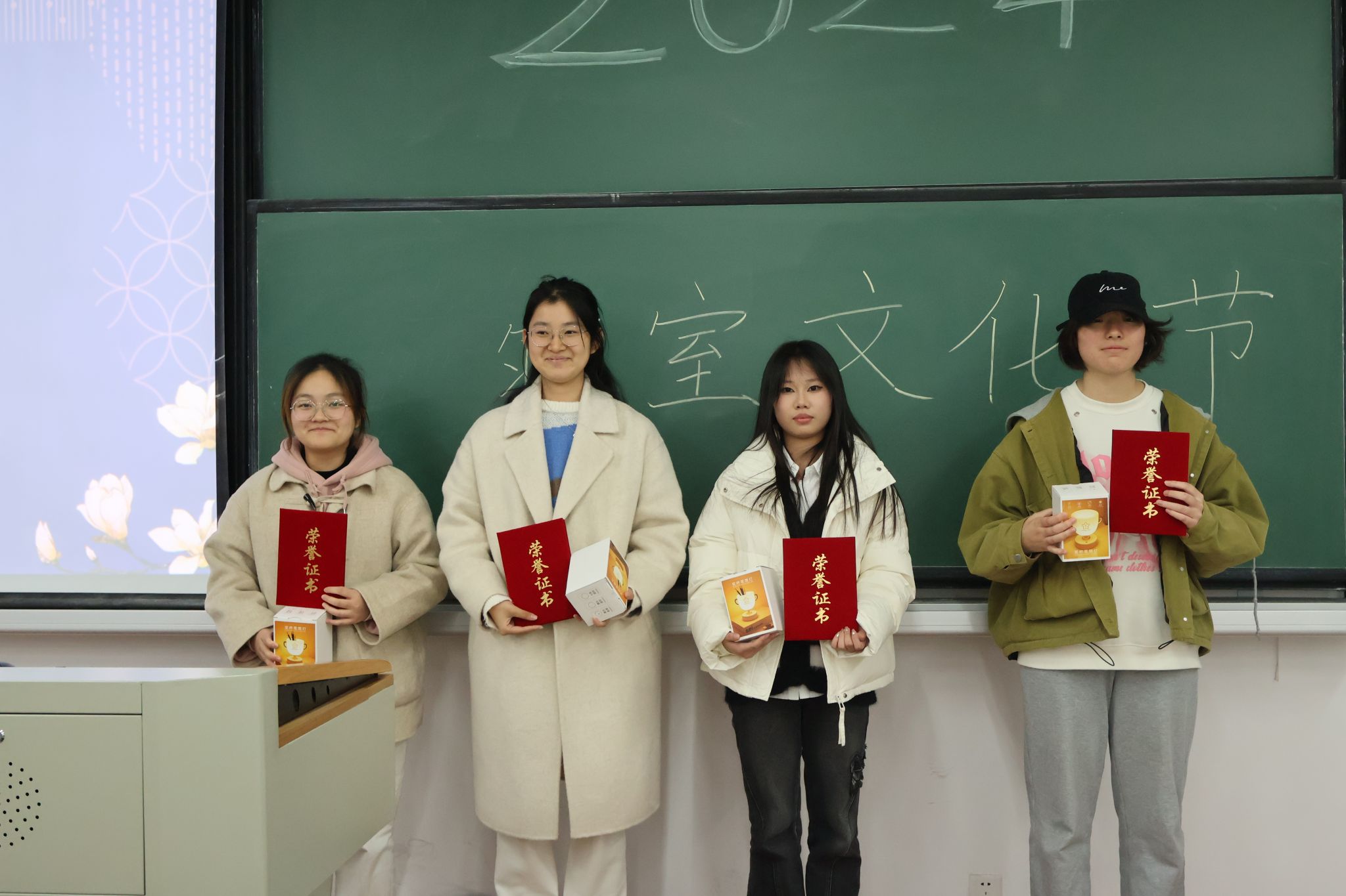 最终,HX4-509和MJ4-306寝室获得文明寝室称号,MJ4-331和MJ4-324寝室获得清廉宿舍称号,MJ4-314和HJ4-506寝室获得语言魅力寝室称号,MJ4-335和MJ4-329寝室获得绿色寝室称号;MJ4-314、MJ4-322、MJ4-331、MJ4-329的寝室长获评外院好室长的称号。