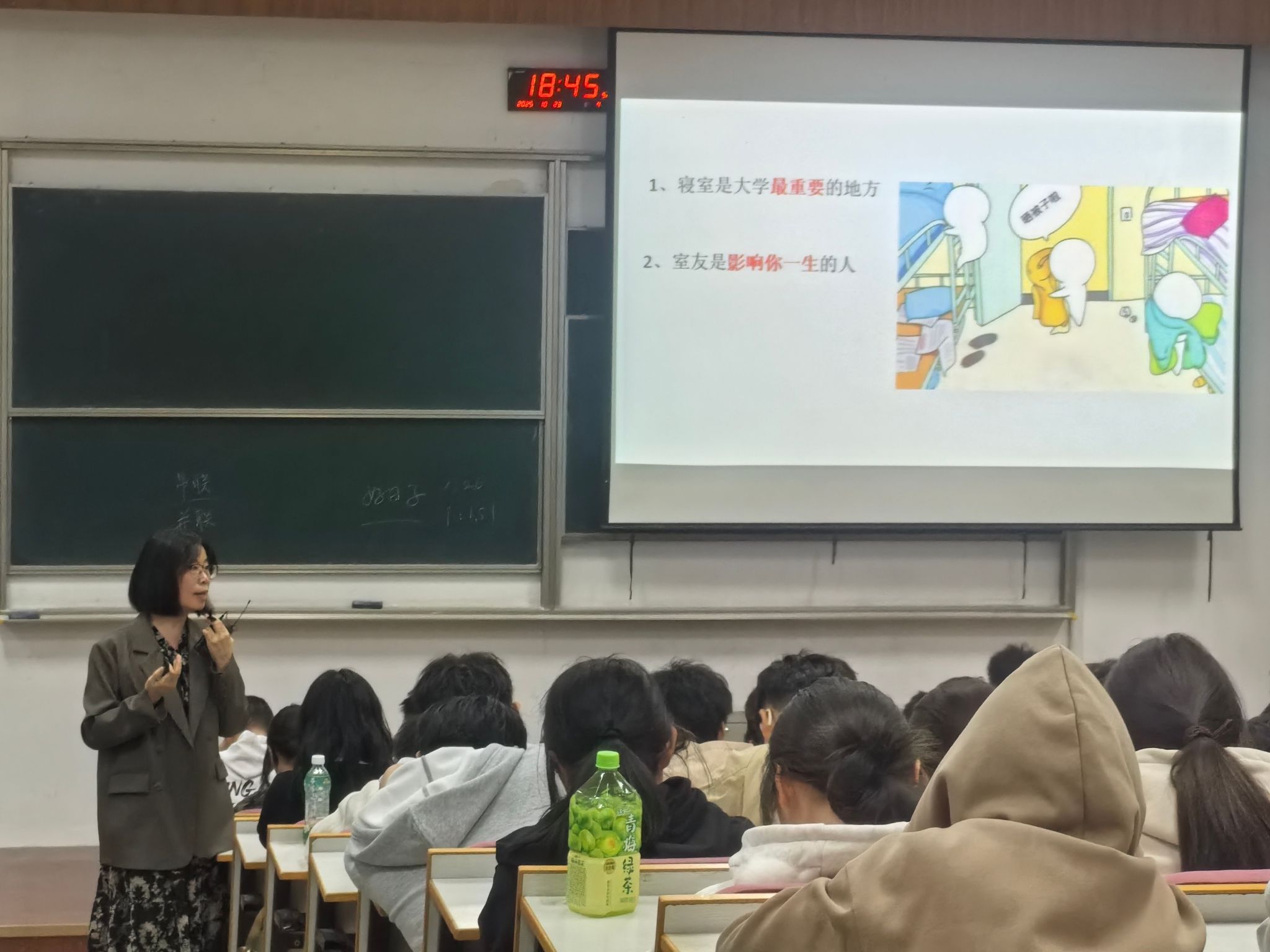 10月23日晚,91论坛 联合医学院、建筑工程学院在悦礼楼报告厅举办寝室长的心理职能培训讲座,学校心理健康教育与资助主管姚春芬老师应邀主讲,全体大一新生寝室长参加培训。