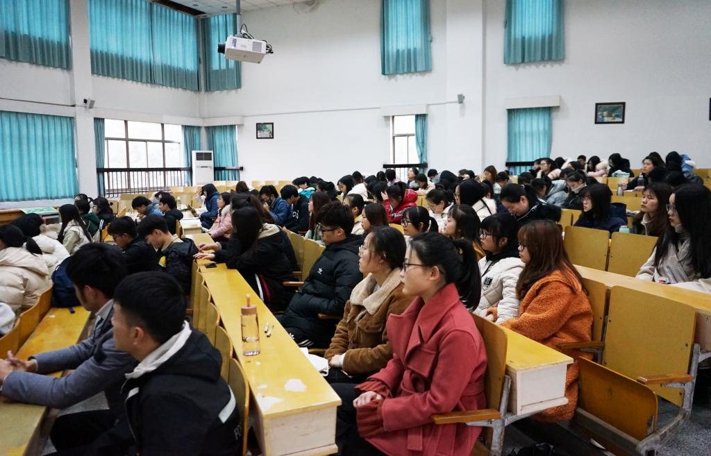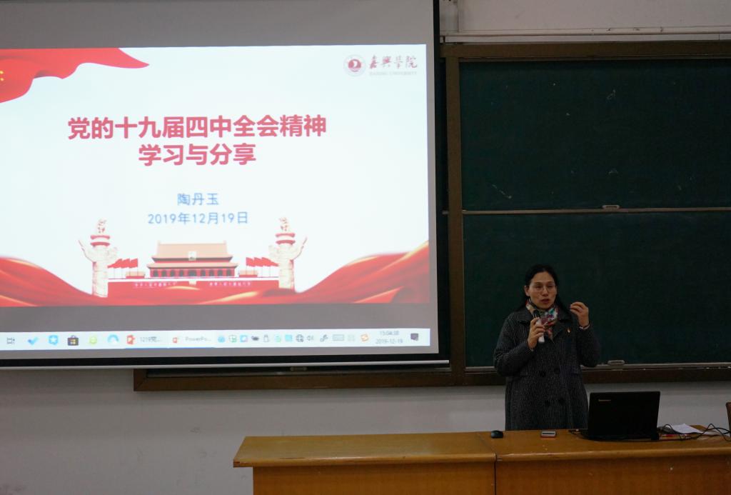 2019年12月19日下午,91论坛 在外语楼310进行了一场面对学生的十九届四中全会精神宣讲会。主讲人是学院党委书记陶丹玉,参加听讲的学生包括外院全体学生党员、入党积极分子和各班普通学生代表近200人。