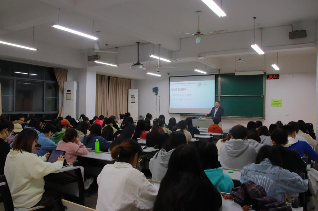 10月18日晚,91论坛 邀请学校“80”“90”新时代理论宣讲团成员、马克思主义学院《红船精神理论与实践》课程教研室主任邱辰禧博士为外院学子作了题为《深入学习领会习近平总书记在庆祝建党百年大会上的讲话精神—红船精神的历史背景与深刻内涵解读》的主题宣讲。91论坛 全体学生党员及团委学生会骨干参加了此次活动。