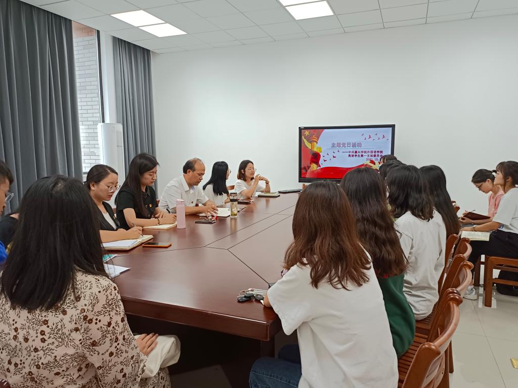 为扎实推进党史学习教育,进一步提升学生党员的党性修养,引导学生党员担负起时代赋予的责任和使命,91论坛 英语学生第一党支部于10月14日下午在兴德楼513开展了主题党日活动。校党委委员、副校长杨培强,学院党委书记周钰、副书记朱莹及支部全体党员同志出席了本次活动。本次活动由支部书记胡笳丽主持。