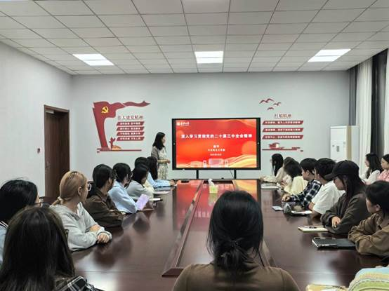 胡平从“坚持和完善怎么样的经济制度”“明确什么是中国特色社会主义最本质的特征”“深化供给侧结构性改革,推动高水平对外开放”“坚持以人民为中心,推动共同富裕”等四个方面对党的二十届三中全会精神展开全面解读,并指出深入学习党的二十届三中全会精神是当前的重要任务,全校师生要将学习成果融入到实际工作和学习中,推动学校各项工作再上新台阶;她表示,作为一名大学生党员,要不断增强“四个意识”、坚定“四个自信”、做到“两个维护”,充分发挥自身的先锋模范作用;要积极参与社会实践,关注国家的政策导向,不断增强创新能力,为国家改革发展贡献自身智慧;要关注社会民生,关注贫困地区的发展,为实现共同富裕建言献策。