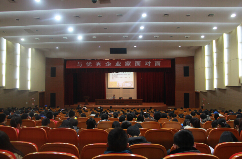 卫飞翔总经理结合自身创业经历, 从立志的重要性、何为人才 、如何成才 、何为成功、如何成功等方面与大家做了分享和交流。从大学时的创业艰辛到现如今的辉煌业绩,卫总用其亲身经历向同学们证明了成功没有秘诀,立志、勤奋、毅力是通往成功的必备素质。整场讲座引经据典、深入浅出、氛围轻松,掌声练练。