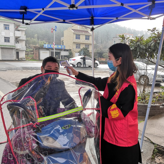 作为一名学生党员,英语161班金航婷曾参加过南湖革命纪念馆双语志愿讲解员、关爱自闭症儿童志愿服务等多个志愿服务活动。当看到新闻中每天新增确诊和疑似人数不断增加,她毫不犹豫加入志愿服务,穿上红马甲,在路口劝导村民减少外出,正确佩戴口罩,并为村民测量体温和记录。在一点一滴的检查和服务中,她感悟到作为一名学生党员,此刻她也在践行着一名学生党员应有的使命。