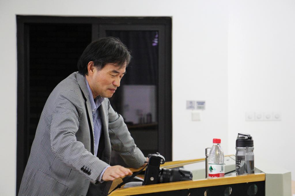 随后,他分析了摄影的技巧与构图的多重要素——光影的运用、构图的技巧和摄影时的光线人像条件。他以自己的一系列作品为例,向同学们具体展示了不同光线、不同布景下的摄影方式,加深了同学们对于摄影理论知识的认识。