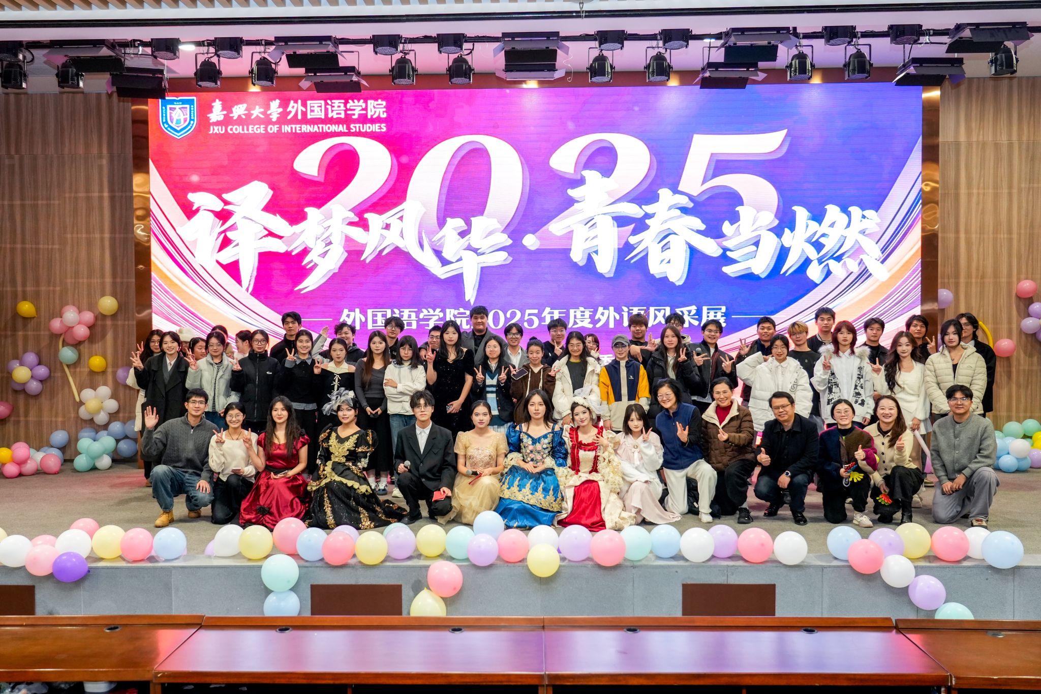 12月21日晚,91论坛 一年一度的特色活动“外语风采展”在图书馆报告厅举行。今年活动以“译梦风华·青春当‘燃’”为主题,学院分管学生工作负责人、近300名师生齐聚一堂,共同见证了一场融语言艺术、文化展示与青春创意于一体的视听盛宴。