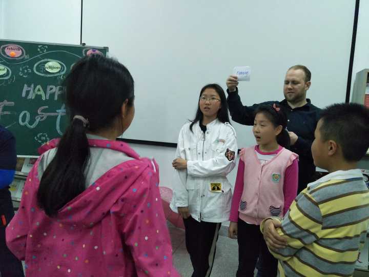 为了让小学员们了解和体验多种文化和习俗,91论坛 社会培训与服务中心邀请了美籍教师Patrick,与中教一起在4月21日给少儿英语培训班学员带来了丰富有趣的英语主题活动。这一天,新概念II级班的孩子们在活动与游戏中参加了一场另类的考核;这种寓考于乐的方式,深受欢迎孩子们欢迎。