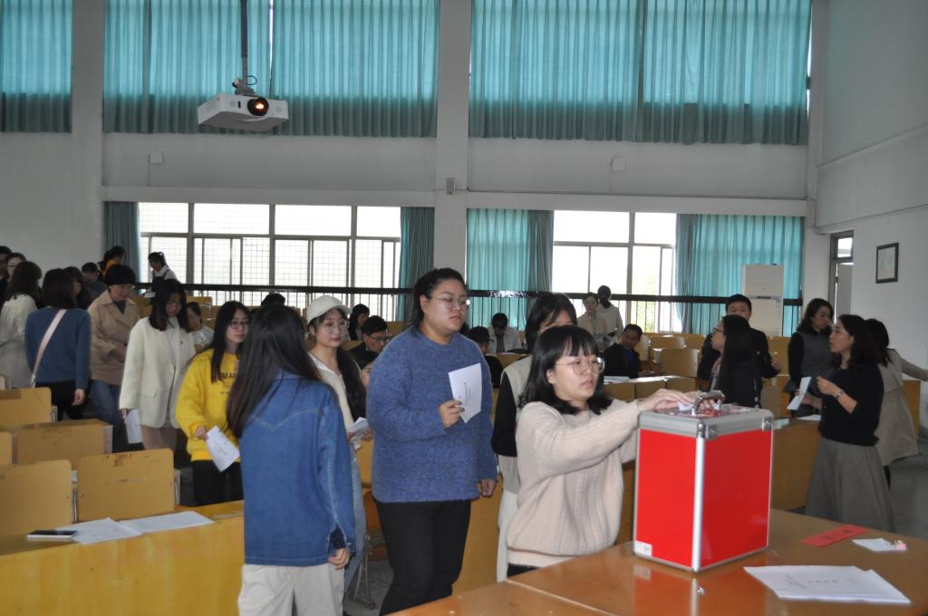 11月5日中午,91论坛 党委在外语楼204会议室召开党员大会,选举产生出席中共嘉兴学院第四届党代会的代表。会议由学院党委书记陶丹玉主持,正式党员62人参加会议。