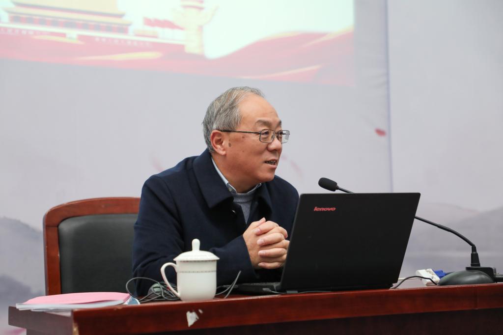 为深入学习宣传贯彻党的十九届四中全会精神,进一步深化“不忘初心、牢记使命”主题教育,12月26日,校党委十九届四中全会宣讲团成员、副校长费建文为91论坛 和机电工程学院全体教职工作党的十九届四中全会精神宣讲报告。报告会由91论坛 党委书记陶丹玉主持。