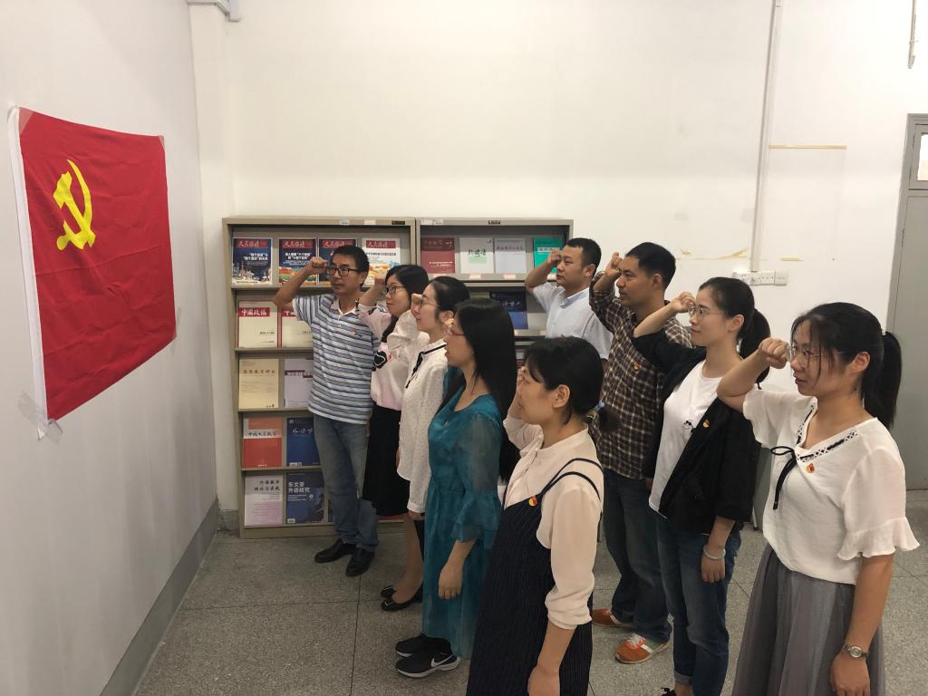 活动由支部书记孙玉慧同志主持。首先,孙玉慧领誓,全体党员面对鲜红的党旗,右手握拳庄严宣誓,重温了入党誓词:“我志愿加入中国共产党,拥护党的纲领,遵守党的章程,履行党员义务,执行党的决定,严守党的纪律……永不叛党”。这是每名党员的庄严承诺,也是争做合格党员,发挥先锋模范作用的号角。