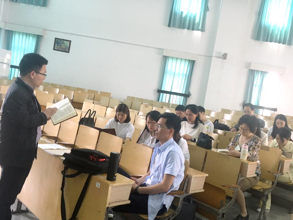 首先,针对报告中的“全面增强党的执政本领”,丁建良联系工作实际指出为作为高校党员老师的我们更应该增强自身的教学本领、提高教学水平,并善于运用互联网技术和信息化手段创新开展教学工作。此外,结合健全党和国家监督体系,丁建良也提到学校深化巡查工作组将于本月在外语学院进行为期两周的巡查工作,要求支部全体党员积极配合校巡查组完成本次的巡查工作。最后,丁建良指出,服务师生、做党员义工不仅仅体现在外的社会服务上,同时更应该体现在给学生的课外辅导答疑和帮助上,并叮嘱党员老师在具体展开这些工作时应该备份好资料以备检查。