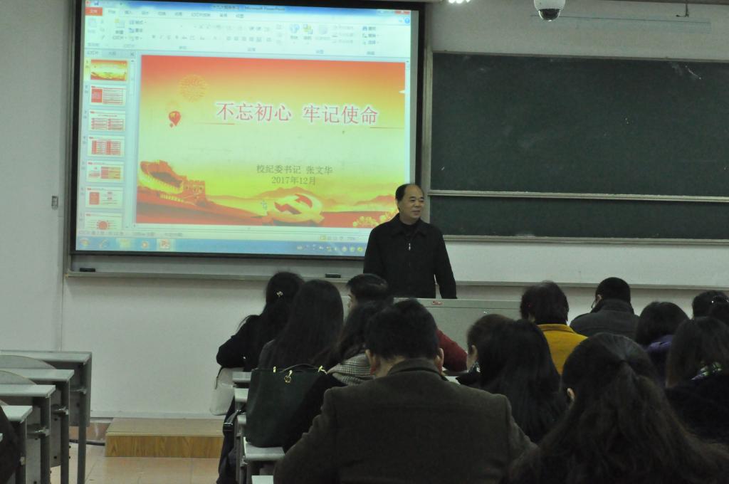 12月14日下午,91论坛 在教一139举行政治理论学习会,校纪委书记张文华应邀为学院全体教师作党的十九大报告宣讲。宣讲会由91论坛 党委书记陶丹玉主持,91论坛 全体教师参加宣讲会。