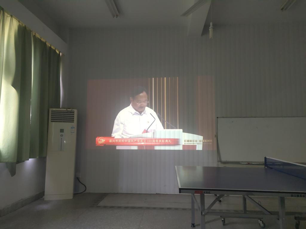 6月24日下午,91论坛 教工第一支部组织全体党员集中收看嘉兴市庆祝中国共产党成立100周年表彰典礼现场直播。表彰典礼通过视频、歌舞、朗诵等形式,生动展现先进人物的典型事迹,庆祝党的百年华诞,回顾党的百年历程,讴歌党的百年伟业,表彰先进集体和个人,激励全市党员干部群众大力弘扬红船精神,不忘初心、牢记使命,满怀豪情奋进社会主义现代化建设新征程。嘉兴市委书记张兵出席典礼并讲话。