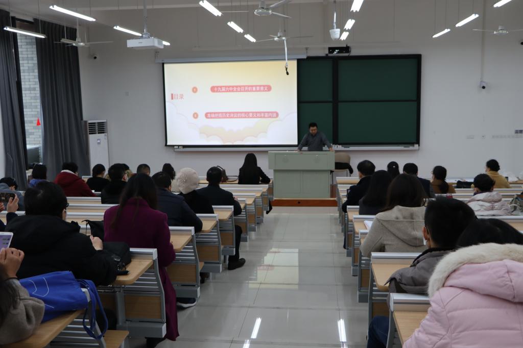 周钰书记在总结发言中指出,彭冰冰教授的报告脉络清晰、立意深远、内容丰富,让我们更加深刻理解了党的十九届六中全会的重大意义与丰富内涵,更加全面认识了党的百年奋斗重大成就和历史经验。党的十九届六中全会,是在我们党成立一百年的重要历史时刻,在党和人民胜利实现第一个百年奋斗目标、全面建成小康社会,正向着全面建成社会主义现代化强国的第二个百年奋斗目标迈进的重大历史关头召开的一次重要会议,在党的历史上具有重要的里程碑意义。要根据有关部署要求,扎实推进“六讲六做”大宣讲活动,把学习贯彻党的十九届六中全会精神与开展党史学习教育结合起来,学深悟透,以学促行,推动学习宣传贯彻党的十九届六中全会精神走深走实,切实把全会精神融入到学院高质量发展的全过程。
